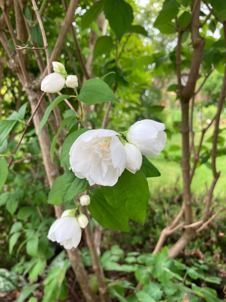 After a good few months of very dry weather and our many water butts emptying rapidly the rain seems to have started and forgotten to stop. The garden is grateful though and has been growing away although I have to say my foxgloves seem to have stunted growth this year and aren’t as tall as expected which is a shame as I plant them at the back of the border. I have lots of things flowering and here are some pictures – a lot of white and also pink.