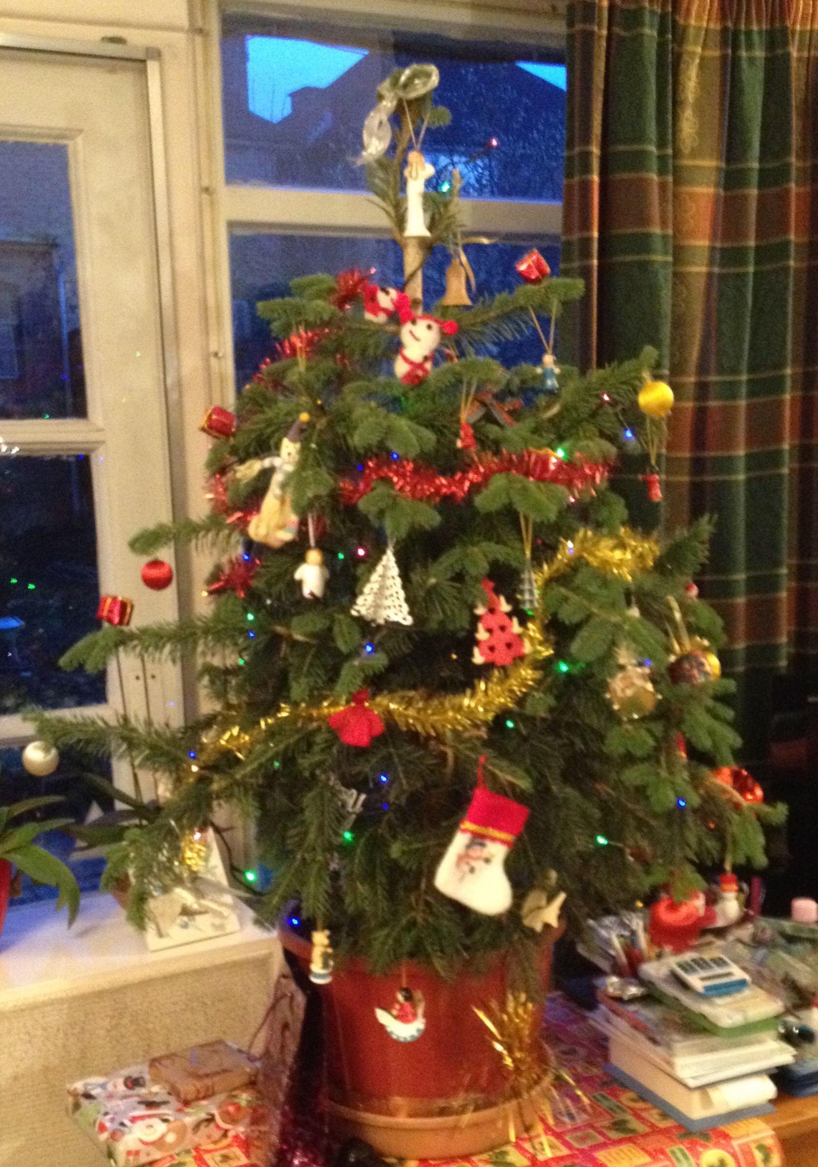 So during the summer months I am usually ready and chomping at the bit to show what is flowering in my garden that particular month. This month the garden is looking quite dead and nothing is flowering so I am using artistic license and showing my real Christmas tree that we’ve had outside in a pot since last year.