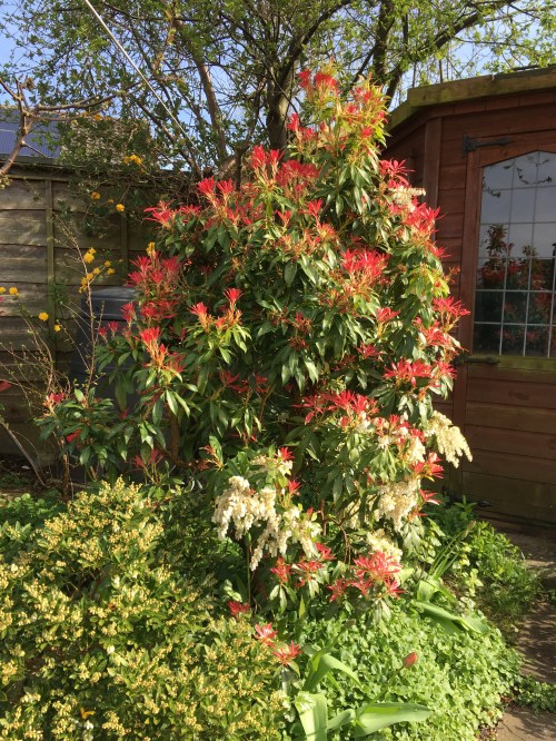 There is so much on flower right now in the garden so here are a few things I haven’t already shared. Some gorgeous new dark red tulips, muscari and a pieris. (I hope that’s how it’s spelt).