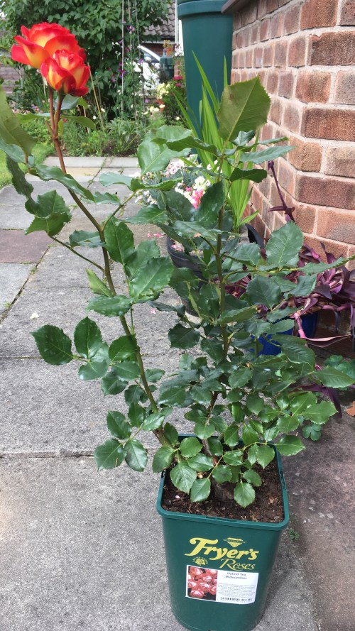 I enjoyed going round the garden centre smelling lots of roses this afternoon although I knew I wanted a pale pink colour and here is the one I eventually picked – Dorothy House.