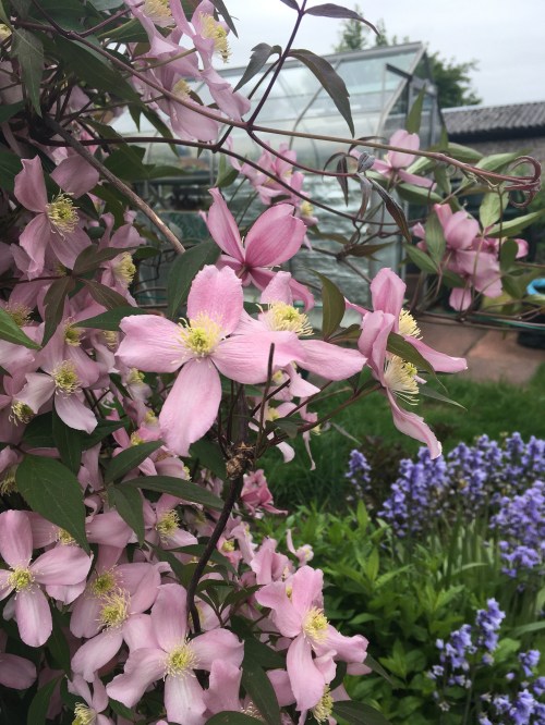 I love this time of year, when the garden is full of colour especially forget-me-nots and something different catches your eye every time you go outside. My seeds in the greenhouse are doing well as are the plants I overwintered – dahlias, pelargoniums (I only have a couple in pots – don’t grow many as I try to concentrate on bee friendly plants), and tender fuchsias.