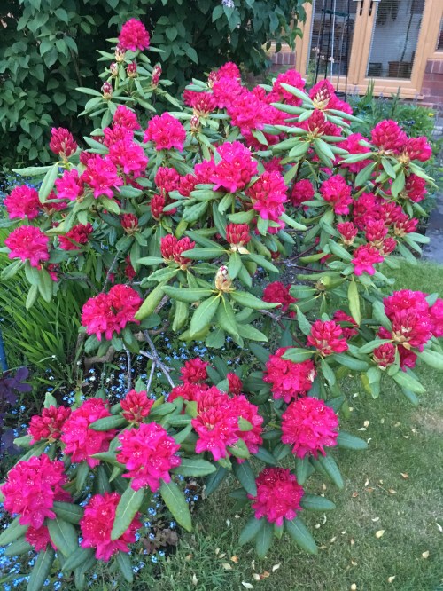 Continuing in my series of firsts in the garden here is my beautiful dark pink rhododendron that only came out a few days ago
