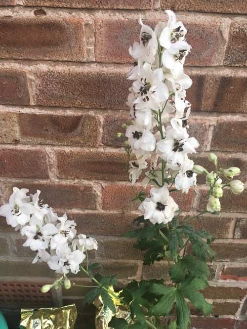 So here’s a selection to of what’s flowering currently including the new delphinium I bought at Chatsworth flower show which is white as I’d hoped and patiently waiting to be planted. Maybe tonight!