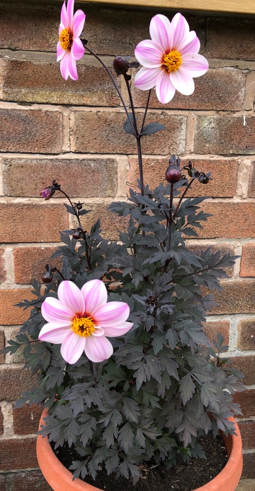 Here are 2 of my dahlias that have started flowering this week. I only really like the dark leaved single flowered varieties which I believe the bees prefer too. The first is one of the happy single ones and second is Moonfire