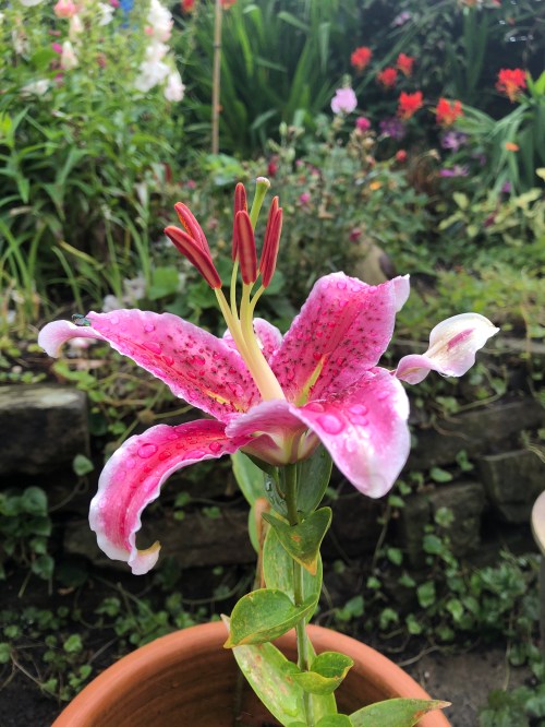 Things are coming on thick and fast in my northwest England garden and today I’d like to share my pictures of lilies growing in the garden. I garden on clay and so the lilies are in pots as I’m not sure they’d take to the conditions well.