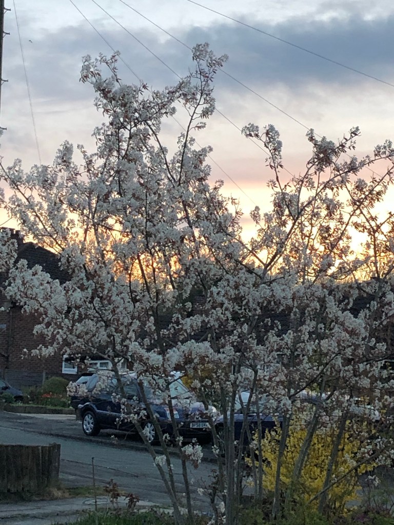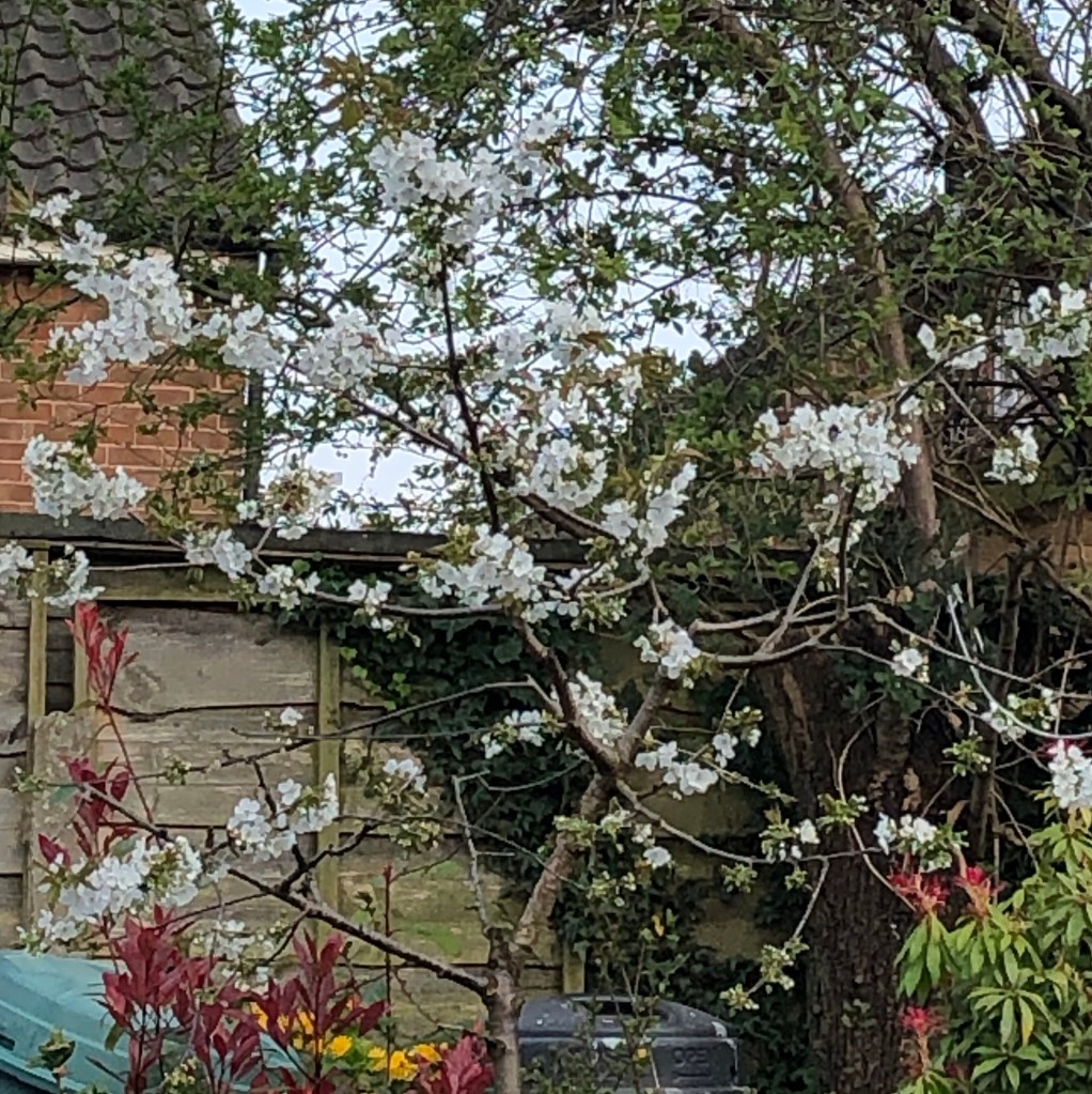 I had a lot of trouble taking this picture, I wanted the cherry tree to be the centre of attention and avoid the compost heap, washing line, shed and too much of the big tree at the back. So here’s my best attempt, here’s hoping for more than 6 cherries this year and that we get them before the birds. We tried to cover it one year which meant the birds couldn’t get the cherries but neither could I and it didn’t look very nice!