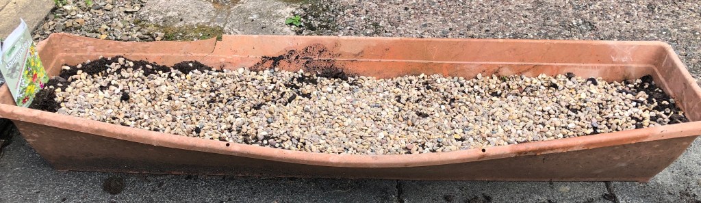 For a while now I have really admired and wanted to grow a bed of wildflowers and by this I do not mean a garden left to its own devices and full of weeds and sometimes known as a wildflower garden. I mean actually sowing a wildflower mix. I have a large garden but have no empty beds that this could be done in so I’ve emptied a trough which had bulbs in, only 1 actually flowered (I’ve replanted it), sown my seeds and covered with gravel just to keep the seed in place. I wait to see what happens next. Pictures are, seed packet, before and after of the trough and if this doesn’t work I’ve basically most lost the cost of the seed packet £3 and some time and I’ll try something else in there next year.