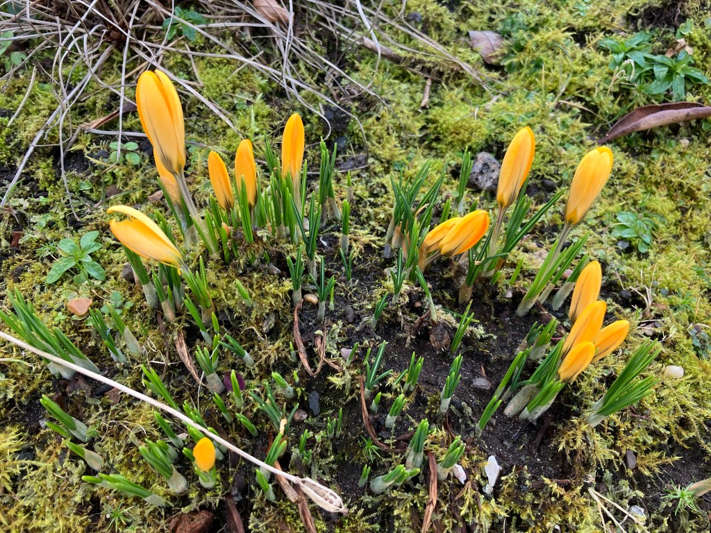 Slowly I think but the bulbs are starting to come up and I’m noticing already what’s missing. That’ll be most of my snowdrops, probably washed away in extreme rain we’ve had lately. Anyway just a couple of pictures of what is flowering at the moment – lots of crocus and one lonely clump of snowdrops