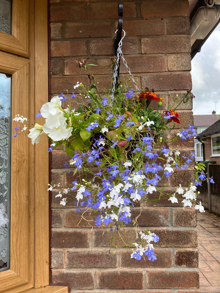 This is only my second ever hanging basket and I bought it pre-planted in October 2022. The viola has been flowering pretty much non-stop since last October, the ivy and grass were in it as were the sunflower seeds. I’ve added a few things and am really pleased with how it looks. I’ll need to change it a bit for winter when my tumbling Tom finishes